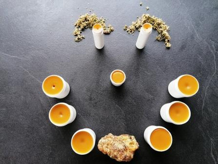 Da es auch bei mir wieder an der Zeit war, meinen Vorrat an Pechsalbe aufzufüllen, durchstöberte ich meine Kräuterecke und fand noch ein herrliches selbstgemachtes Arnikaöl und getrocknete Schaftgarbe. Zusammen mit Bienenwachs und als Abschluss noch ein paar Tropfen Teebaumöl, verfeinerte ich mein diesjähriges Werk. Obwohl ich beim Anblick dieser Liste schon ein bisschen Zuviel des Gutes sehe - wo ich doch besonders bei dieser Salbe immer auf Tradition gesetzt habe – bin ich überzeugt, hier ein richtiges Power-Paket geschaffen zu haben. Manchmal überkommt mich halt die Freude und ich experimentiere mit Eifer.